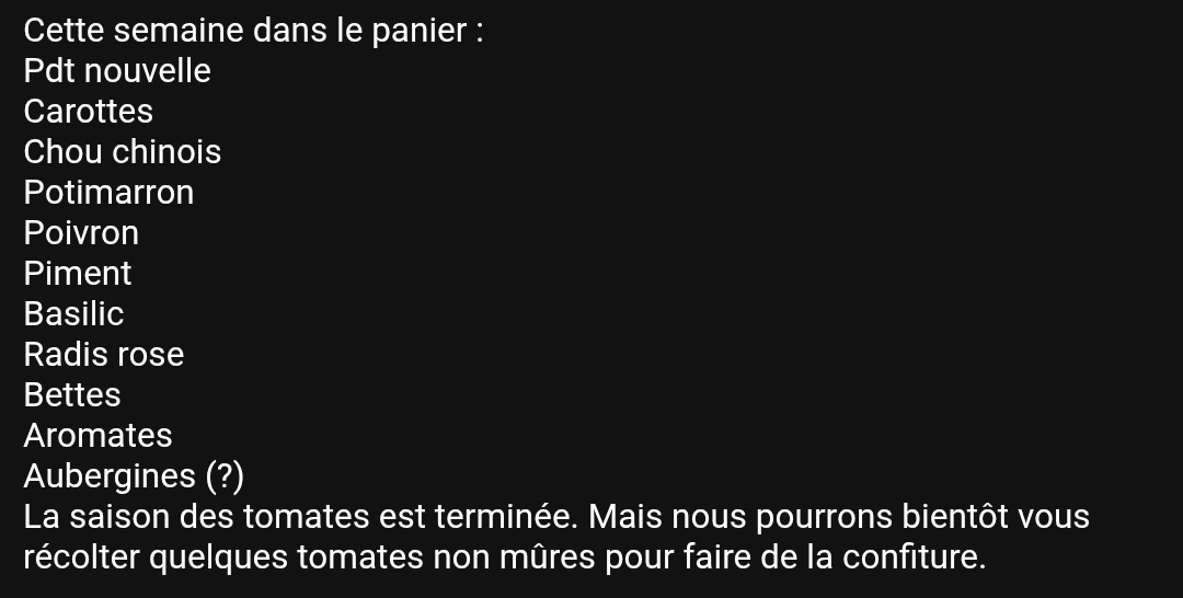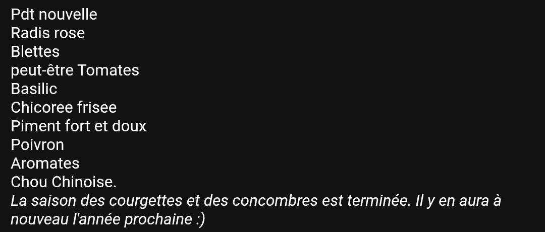 Soit un total de 50 distributions pour les parts de récoltes hebdomadaires et 25 distributions pour les parts de récolte par quinzaine.